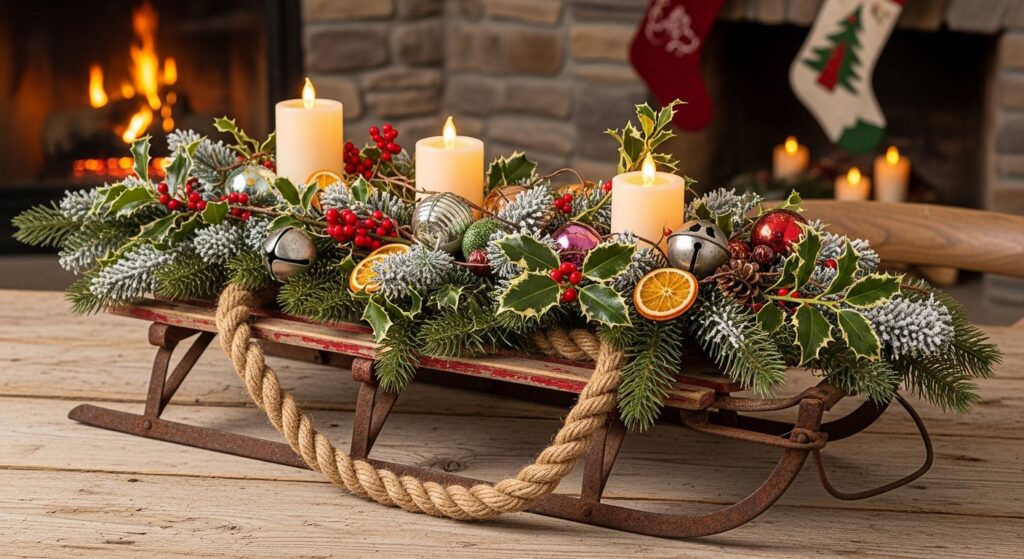 Utilisez un Vieux Traîneau en Bois comme Pièce Centrale Rustique