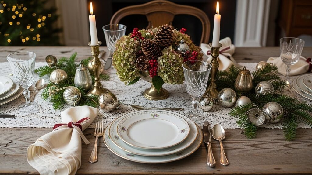 Centres de Table Antiques Élégants Pour Une Table de Noël Intemporelle