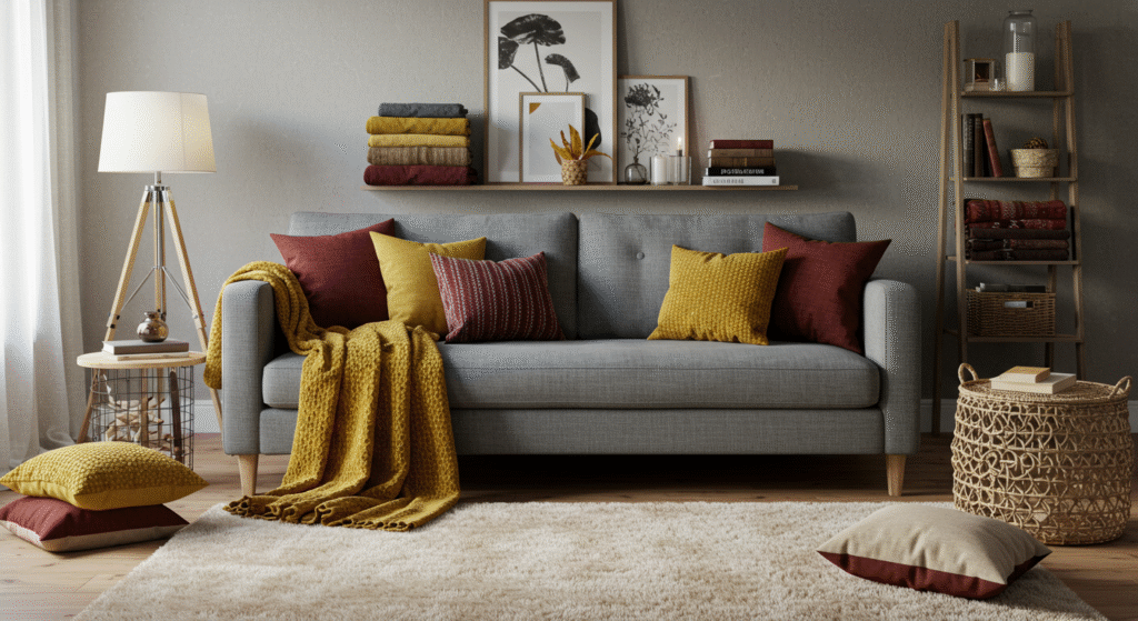 Superposez des Textiles Doux Autour du Canapé Gris pour une Chaleur Instantanée