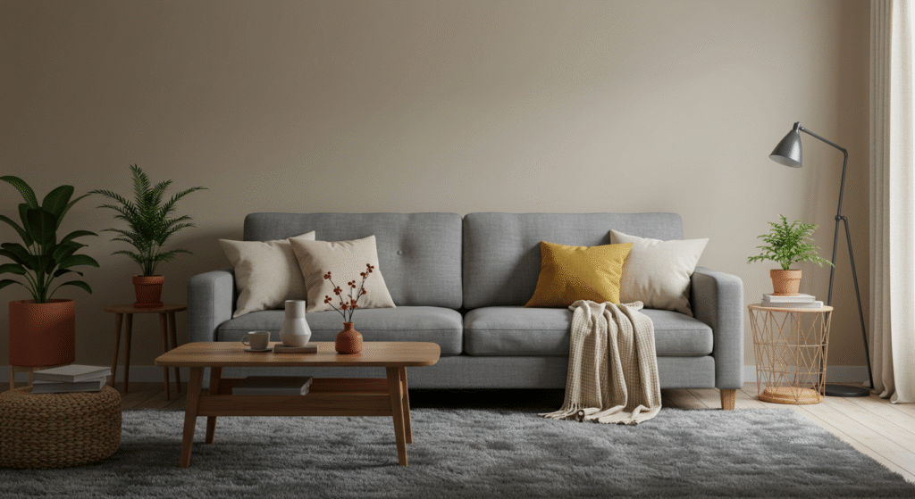 Associez votre Canapé Gris à des Murs Neutres et Chaleureux pour une Harmonie Apaisante