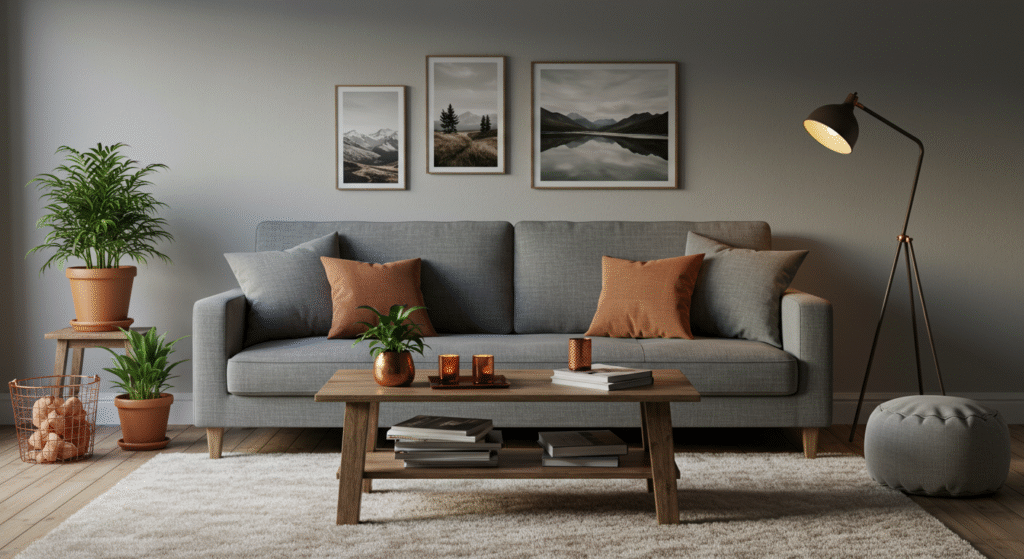 Associez le Gris à des Accents Terreux pour un Confort Naturel