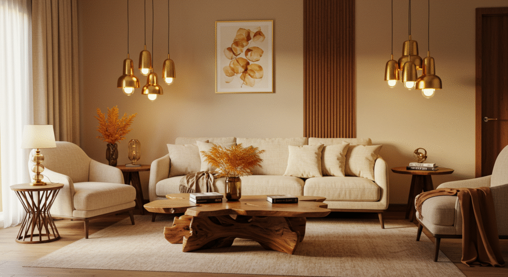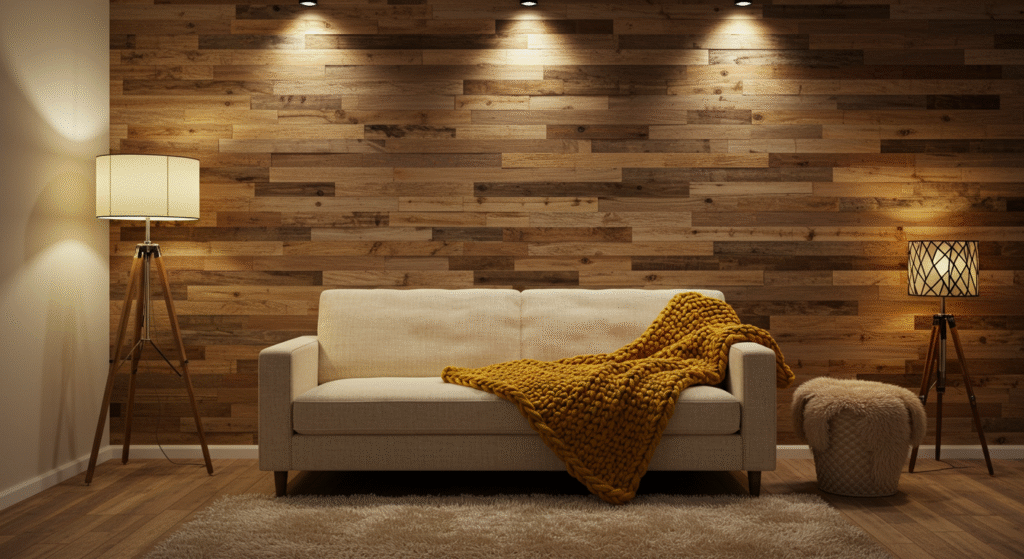 Mêlez Bois et Lumières Chaudes pour un Éclat Doré