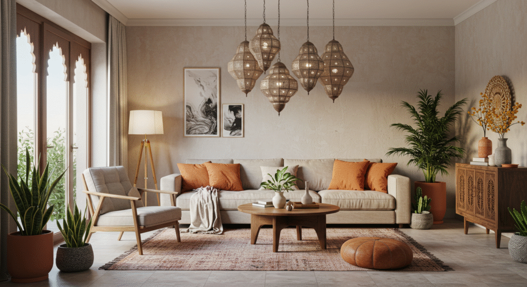 Équilibrez la richesse du style marocain avec des éléments naturels.