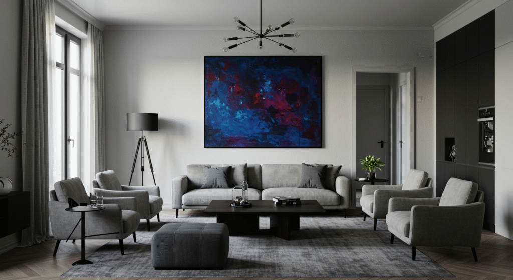 L’art est un moyen élégant de dynamiser un espace gris.